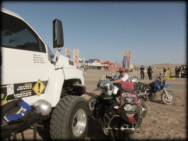 Picking up where we left off - in Copiopo, Chile. The Dakar Race Route made a "loop" out of Copiopo on day 11 and thus the bivouac (and the race ) stayed in the same place for two days which allowed Team RawHyde to have a day of leisure in preparation for our most demanding day of riding - A trip over the Andes on the incredible "Paso de San Francisco". Just imagine this... a rough single lane dirt road, climbing to an altitude of nearly 16,000 feet over the Andes. - now add 20 BMW GS riding tourists and 450 Dakar race teams trying to get over the mountain in the fastest possible time & a chaotic and amazing day is the result.